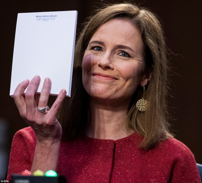 Amy Covid Barrett is perceived as the Devil’s Handmaid by Democrats and the Savior of the Supreme Court by Republicans. Barrett herself is such a mass of contradictions that she surely must have one of the most severe cases of Cognitive Dissonance on record. (How appropriate that her confirmation was shepherded through the Judiciary Committee by Lindsey Graham, a self-loathing man who supports anti-gay legislation.)